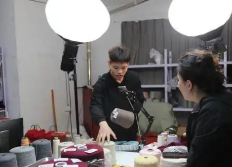 走进保定市蠡县辛兴镇一间毛线直播间看到,工作人员正完成配货、打包、贴单流程,一箱箱毛线针织产品发往全国各地。主播向网友介